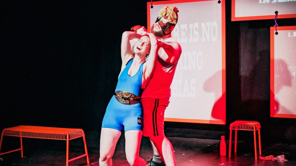 Malaprop Theatre’s Jericho is a look at WWE, journalism, Ireland, being a woman in Ireland, being a woman and possibly a reference to ASMR. For me it was a mess, a sincere mess let down by a weird focus on WWE that never works (please can we have more plays slagging off Vince McMahon) and a real disjointed feeling that comes from the 7 people in the company getting a say but only two people on stage to say it. It has all the chaos of the later stages of a Royal Rumble