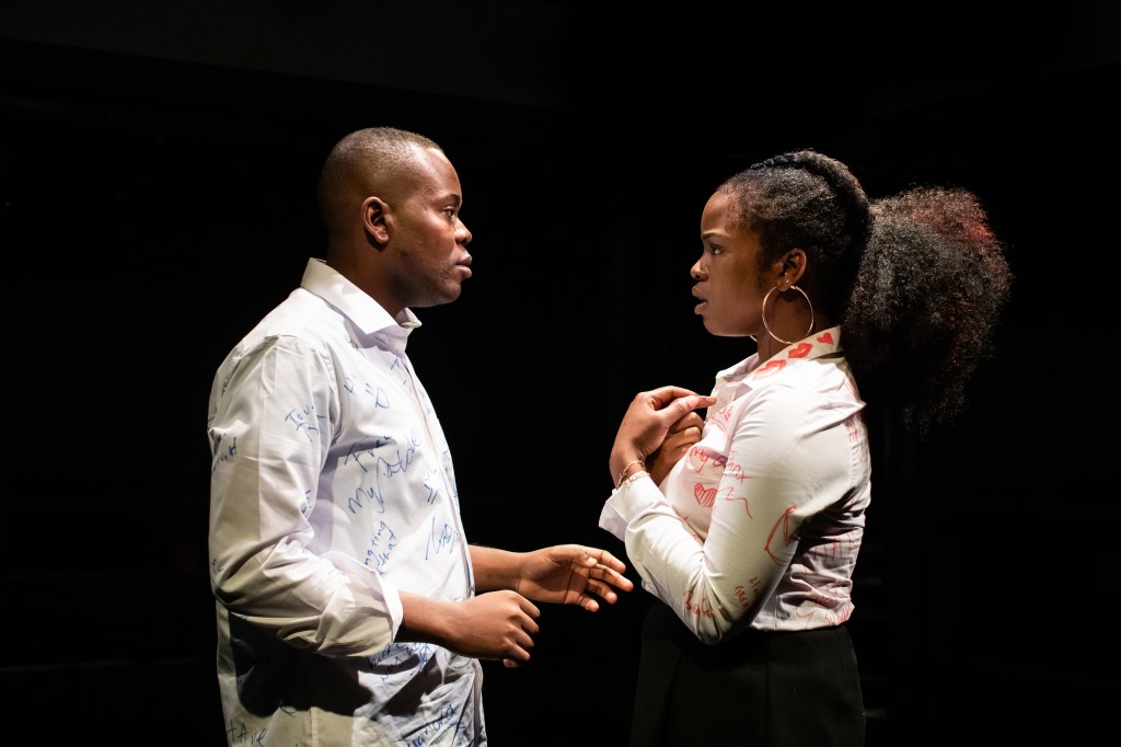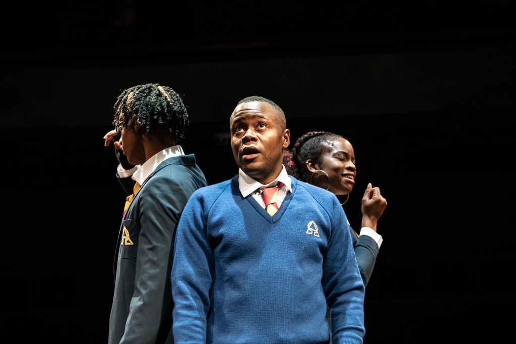 Three actors portray three main and multiple secondary characters to tell simple (until they turn horribly dark) stories of every day school life for black teenagers growing up too fast. Rachel Nwokoro, Anyebe Godwin and Khai Shaw bring a captivating onstage charisma and physicality, exactly capturing the lanky-electric shock energy of adolescent bodies not yet fully in control of their own power. Nwokoro is exceptional, bringing moments of real empathy to her gobby, mardy Joanna. Godwin’s multiple characters show the full range of his maturity and versatility, while Shaw’s well-pitched child-clown Rugrat grabs the attention, but his moments of quite watchfulness suggest he’s capable of much more.