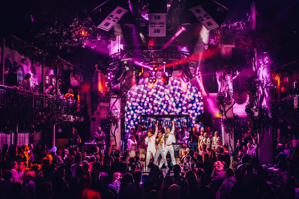 The show doesn’t really begin; cast members wander around talking to you as you are chewing gormlessly on some bread. They are all attractive in conventional way and then you realise why this feels so strange. This isn’t a party. Normal people don’t have parties like this, with nearly naked men in scuba gear, some cirque de soleil-esque acrobatics in a fountain and a baffling scene which was compared to Eyes Wide Shut. This is a fantasy, a fantasy you are on holiday, a fantasy that this loosely linked storyline about a Greek man and his daughter’s semi incestuous romance with her step-mother’s nephew makes any sense. It is a sensory overload with its live band, the extreme lighting and even the tasting of the food. It is theatrical but not necessarily in a good way. The face of a man who looked like he had been fighting in Somme, rather than out having a meal will stay with me for a long time. Compare that to the Baby Boomers getting drunk and dancing the night away whilst being held back from ruining the choreography of the show. It is a sight for the eyes.
