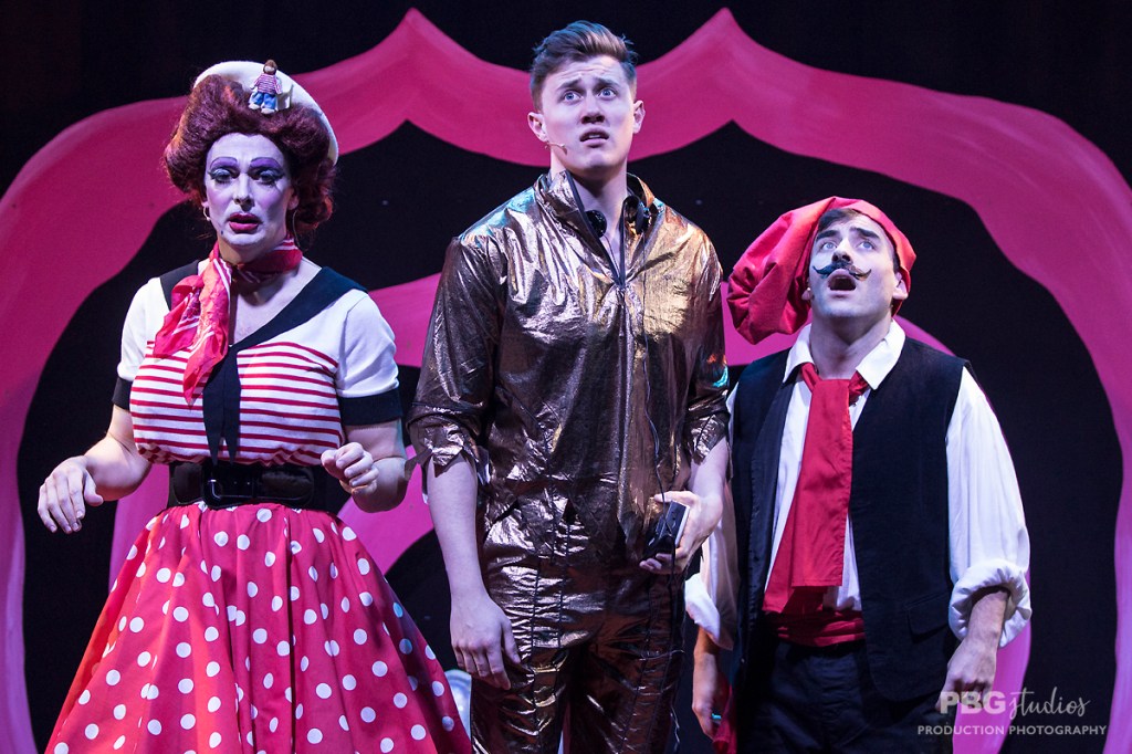 When Dami Olukoya’s sparkly, take no shit lesbian fairy turns Pinocchio into a real boy whose finds it’s not his nose that grows longer when he lies, they are pitched into a war with with local evil landowner and fox Figaro (Christopher Lane, playing the villain with what can only be described as “moustache-twirling glee” despite absence of actual moustache). What follows is two hours of devilry, topless Sunday league Brummie footballers, magic Cadbury’s creme eggs, abandoned amusement parks, farting donkeys, a retelling of the Biblical tale of Jonah and the Whale except with drag and ballroom dancing… oh, look, it’s a panto, okay? It doesn’t need to make sense.